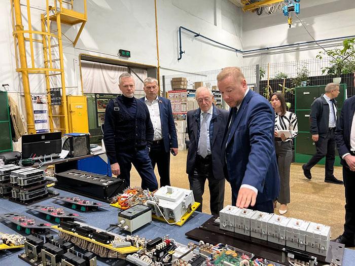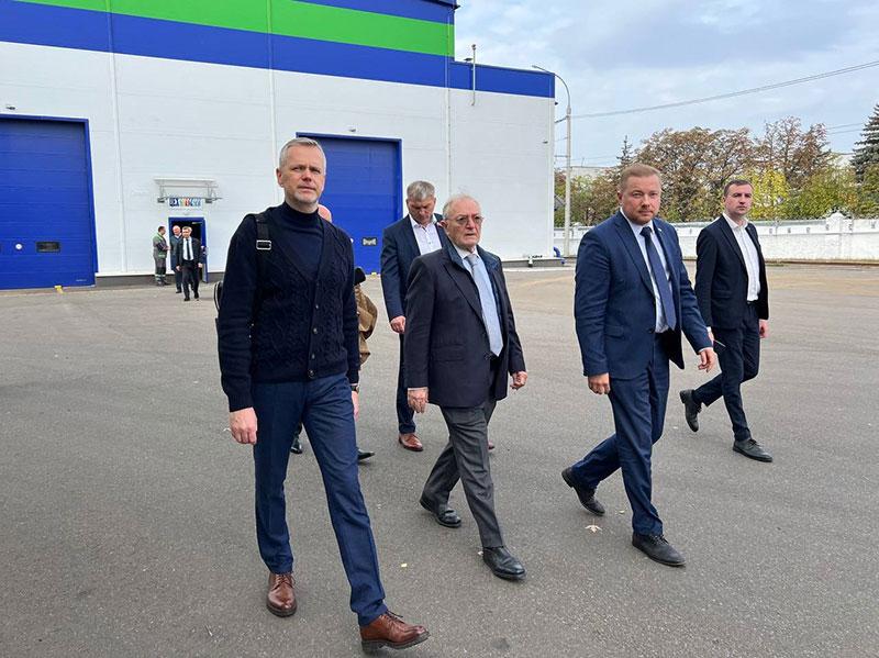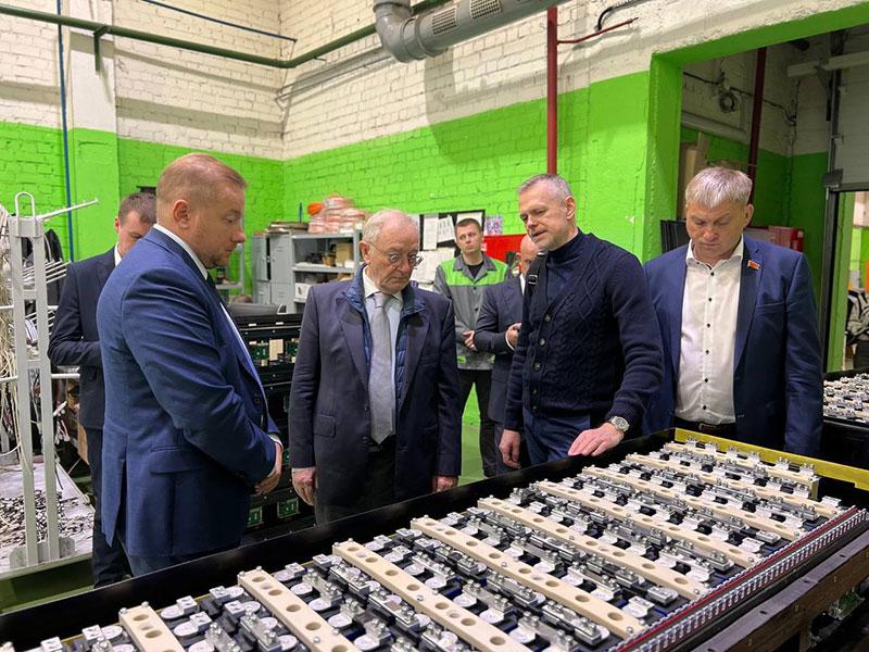 Председатель правления компании «Water & Energy Solutions» и холдинга MDSC г-н Мохаммед Амин Шеркауи, вице-президент компании «Water & Energy Solutions» и холдинга MDSC Михаил Бурыкин, председатель правления MK Industrial Engineering Игорь Митраков и председатель РОО «Патриоты Беларуси» Николай Зарубицкий ознакомились с производством и выпускаемой на предприятии продукцией.