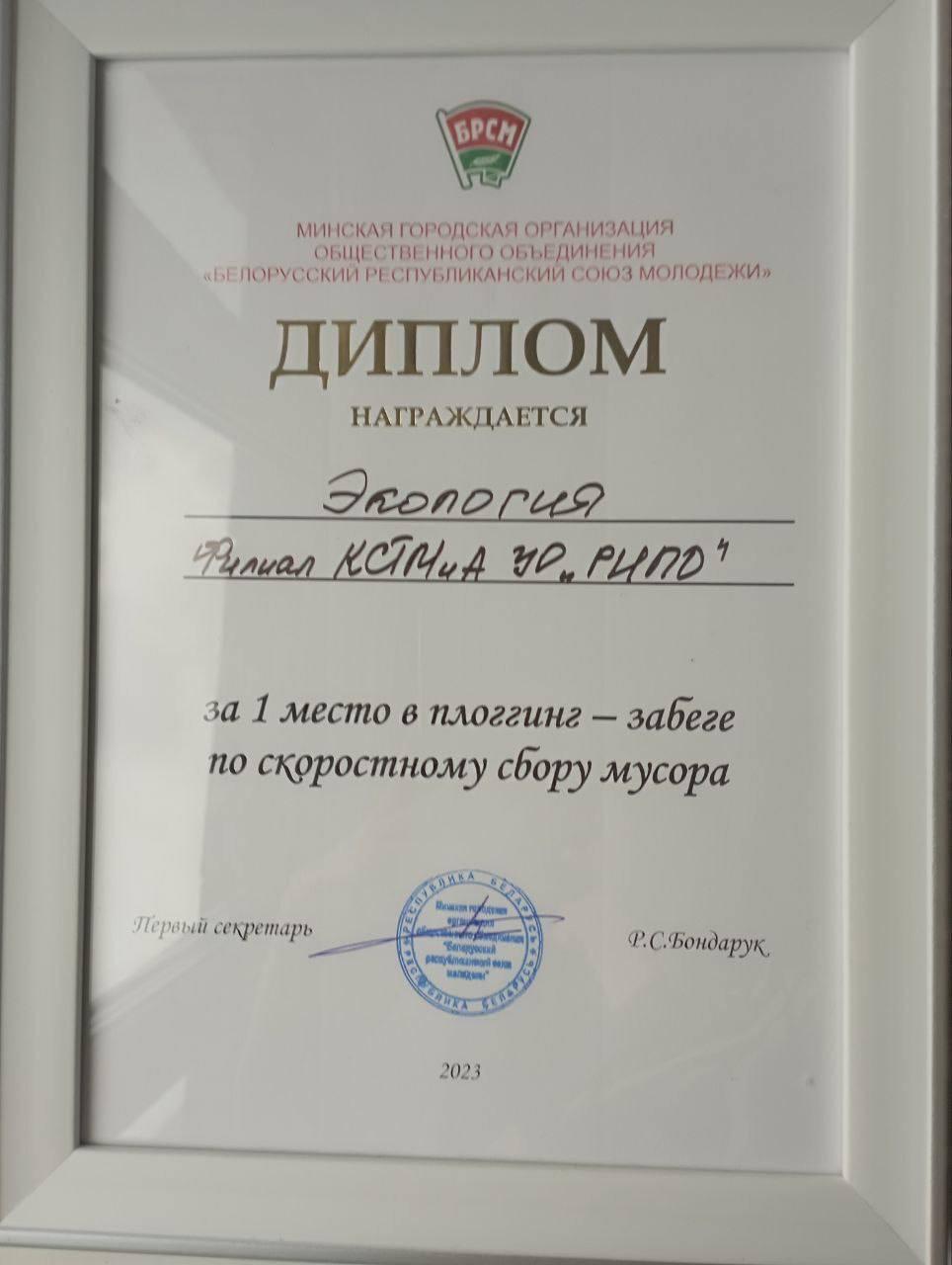 Победа в плоггинг-забеге стала большой гордостью для учащихся филиала КСТМиА УО РИПО. Они показали, что молодежь обладает не только силой и энергией, но и заботится о будущем нашей планеты