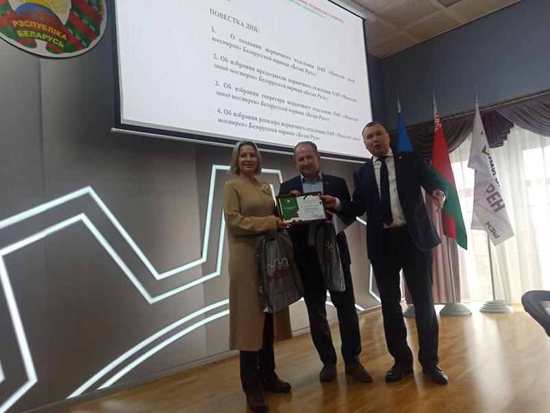 Единогласным решением собрания председателем «первички» избран заместитель директора ОАО «МЗШ» по идеологической работе, социальному развитию и управлению персоналом Александр Скорина.