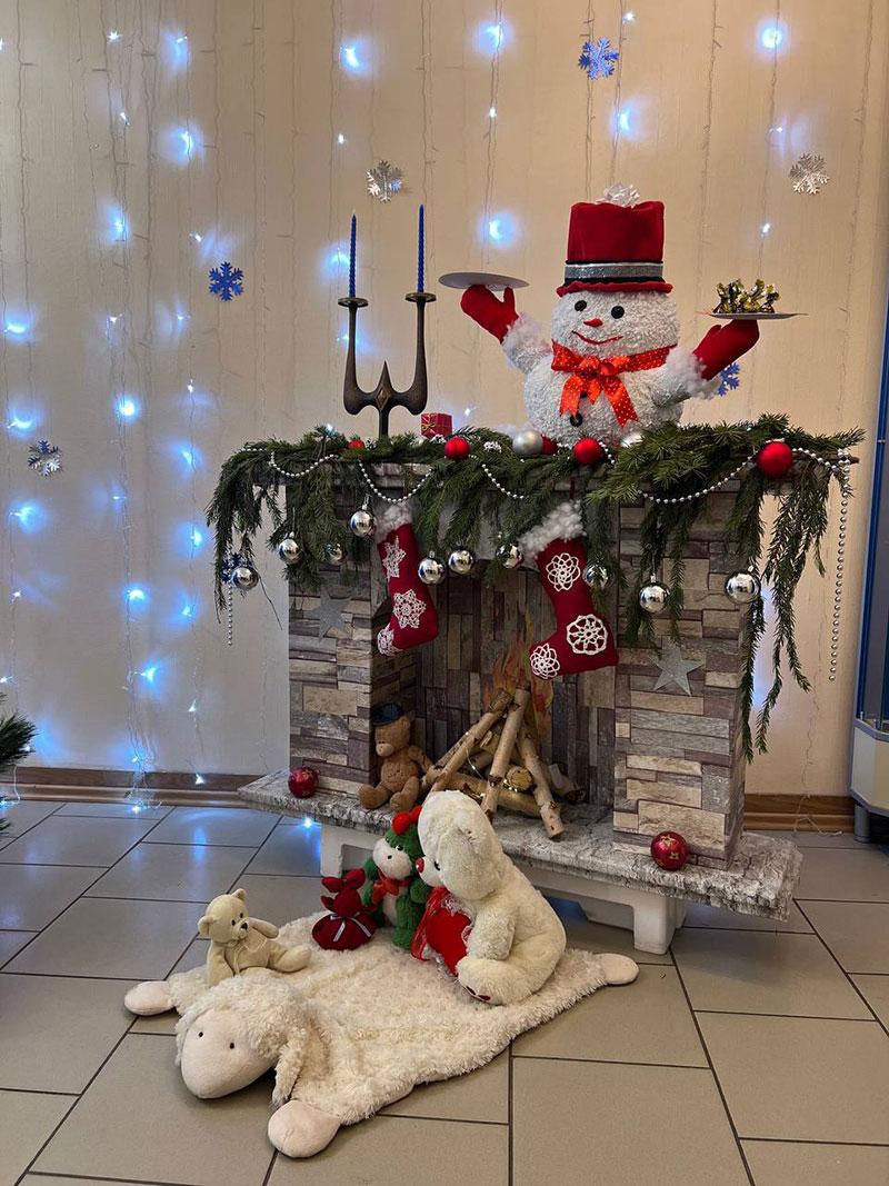 Проживающие в общежитии и гости могут окунуться в волшебство Новогодней лесной сказки в помещении и на улице. Много радости доставят персонажи, которые изготовлены руками работников общежития.