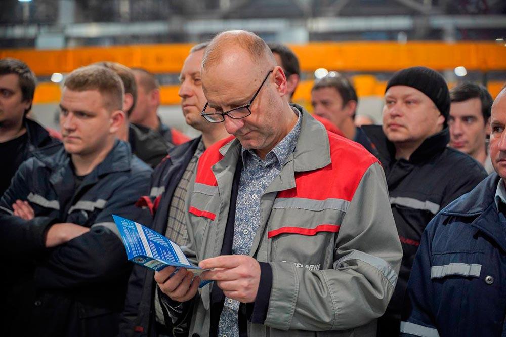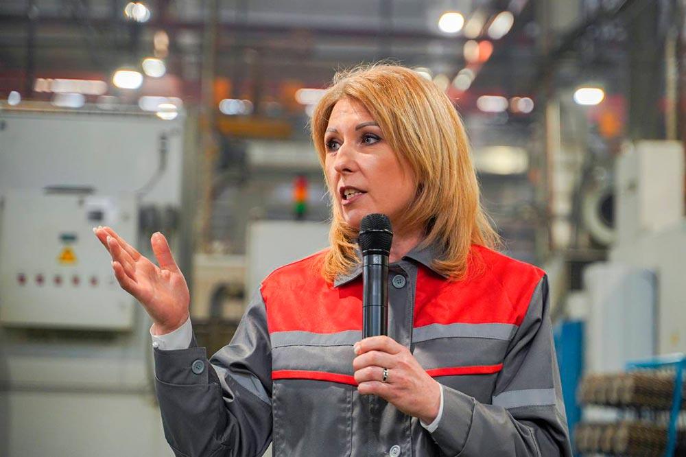 «Сегодня здесь вы и ваш труд, за вами - все мы. А за нами - страна», - обратилась Ольга Чемоданова к заводчанам (чем, конечно, сразу заслужила расположение).