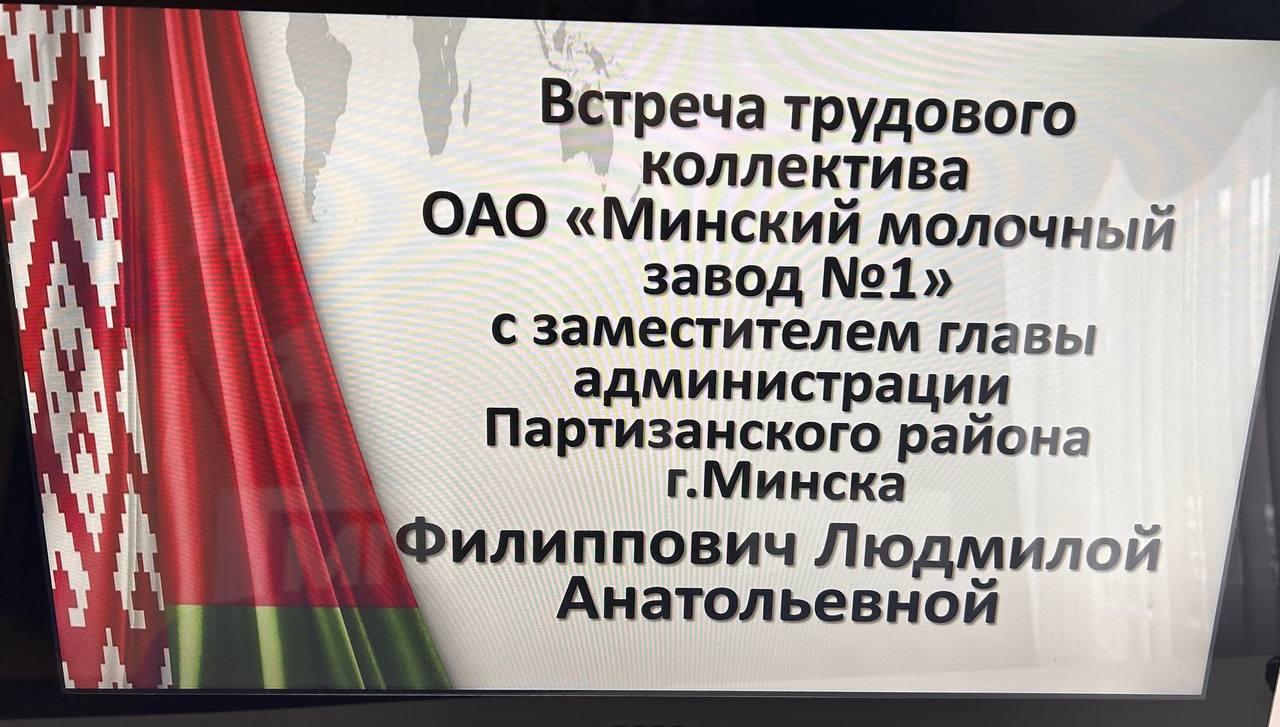 На Первом молочном прошла встреча трудового коллектива с заместителем главы администрации Партизанского района г.Минска Филиппович Людмилой Анатольевной.