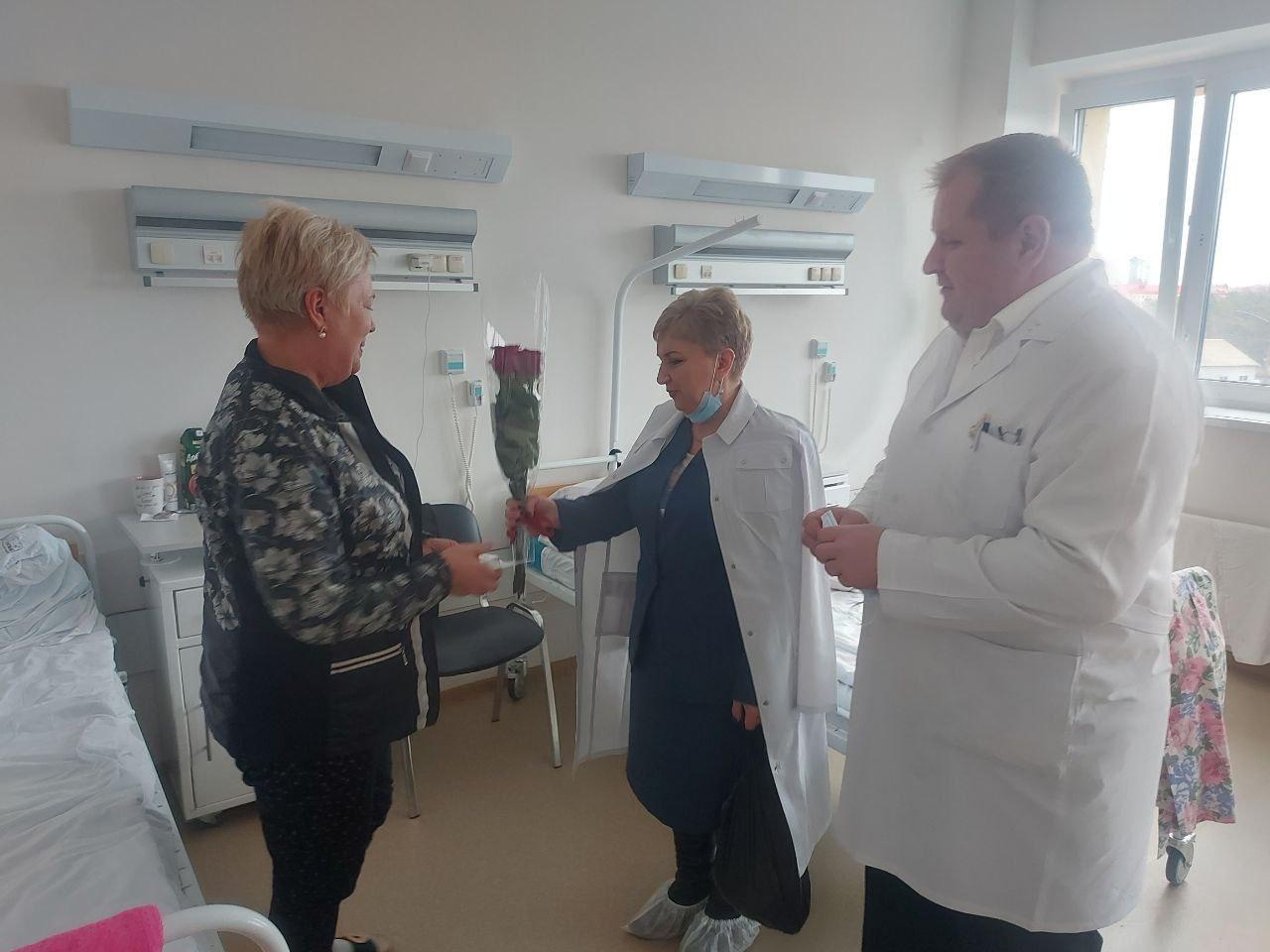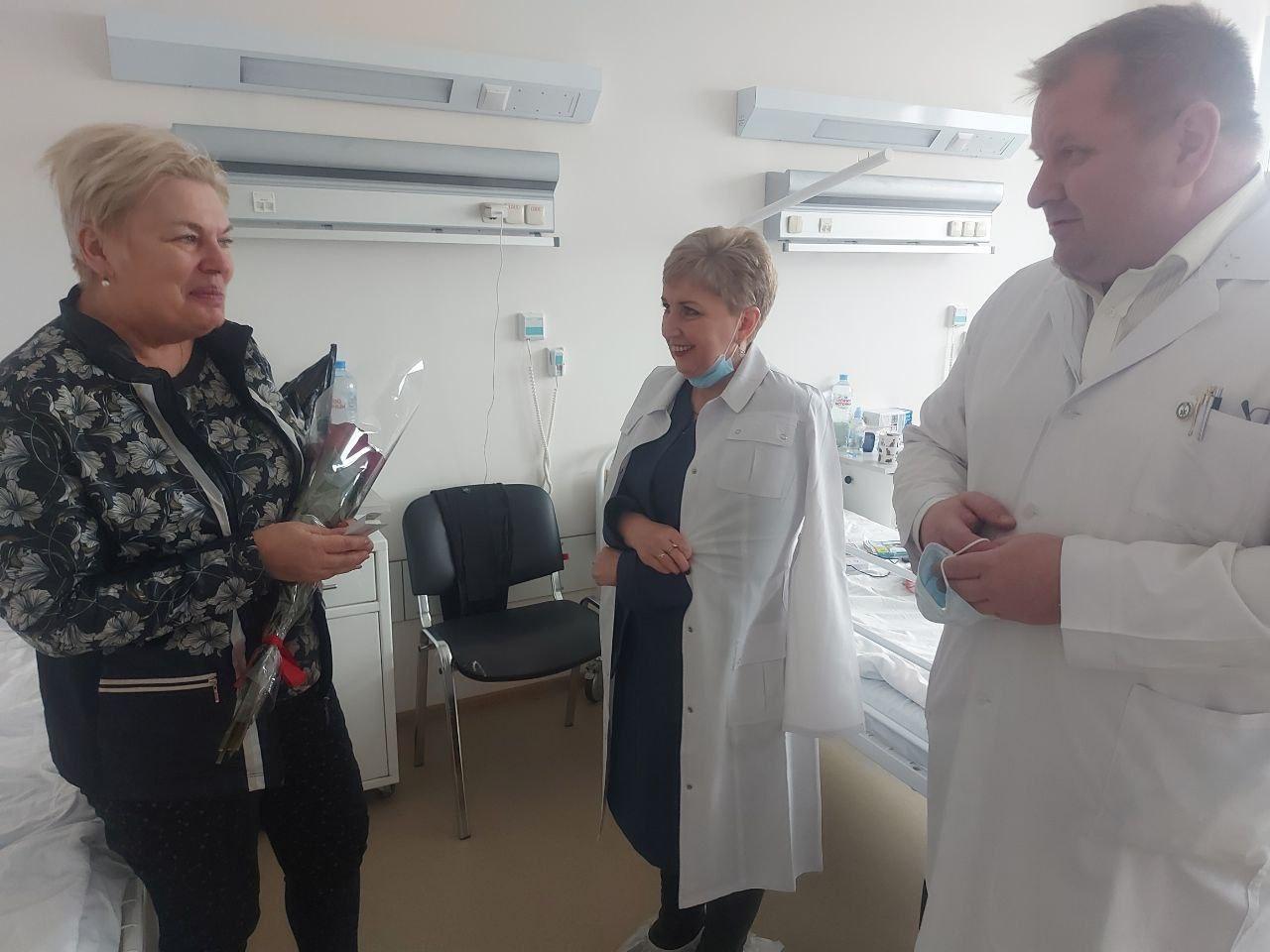 Пользуясь случаем, главный врач Александр Жинко и председатель профкома Татьяна Зырянова проведали находящихся в этой же больнице пострадавших на вызове 10.02.2024 сотрудников 1-ой подстанции.