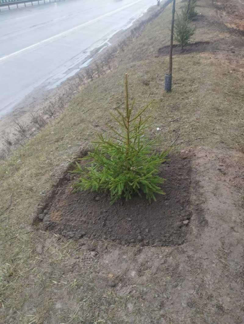 Также велись работы по посадке елей вдоль МКАД, было высажено 115 штук и работы по разбивке мест для посадки кустарников по улице Ваупшасова.