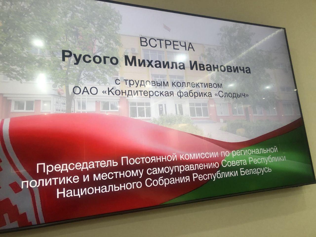 Председатель Постоянной комиссии Совета Республики Национального собрания Республики Беларусь по региональной политике и местному самоуправлению Михаил Иванович Русый встретился с трудовым коллективом ОАО "Кондитерская фабрика "Слодыч"!