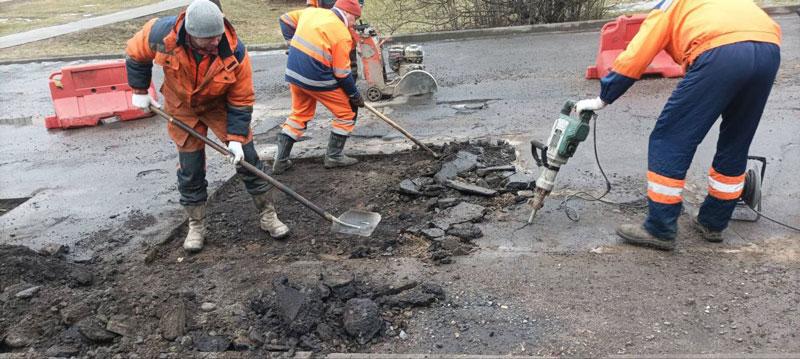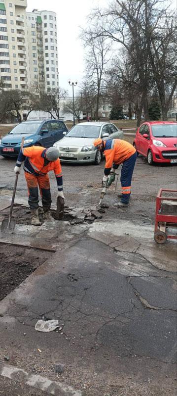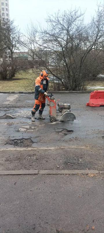 Работы по ямочному ремонту на дворовых территориях, согласно решению администрации Партизанского района, выполняет УП «Ремавтодор Партизанского района г.Минска».