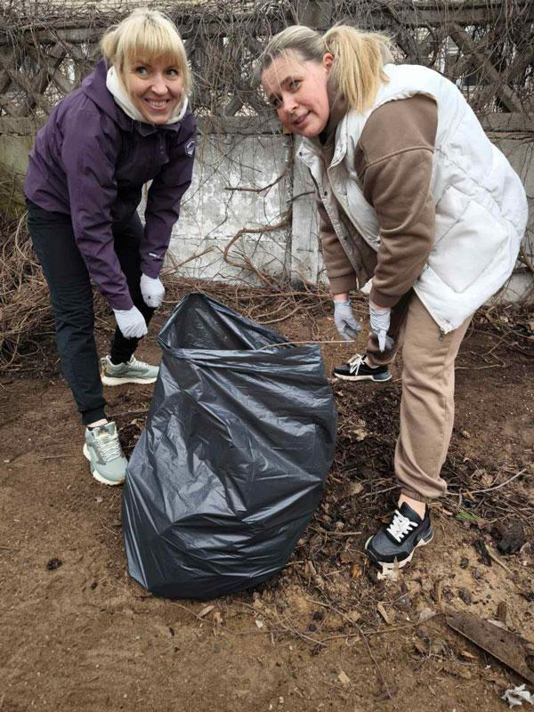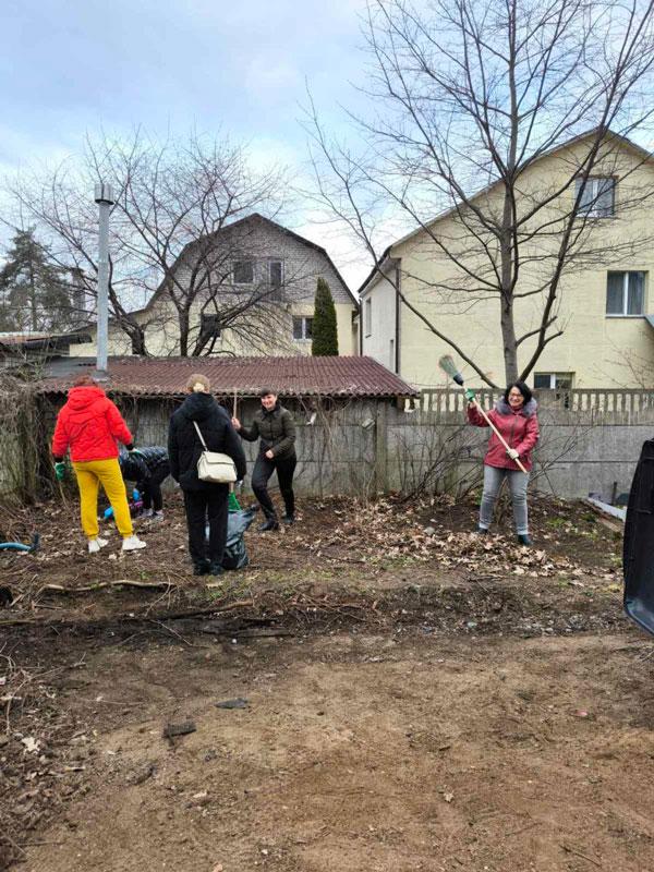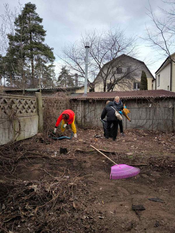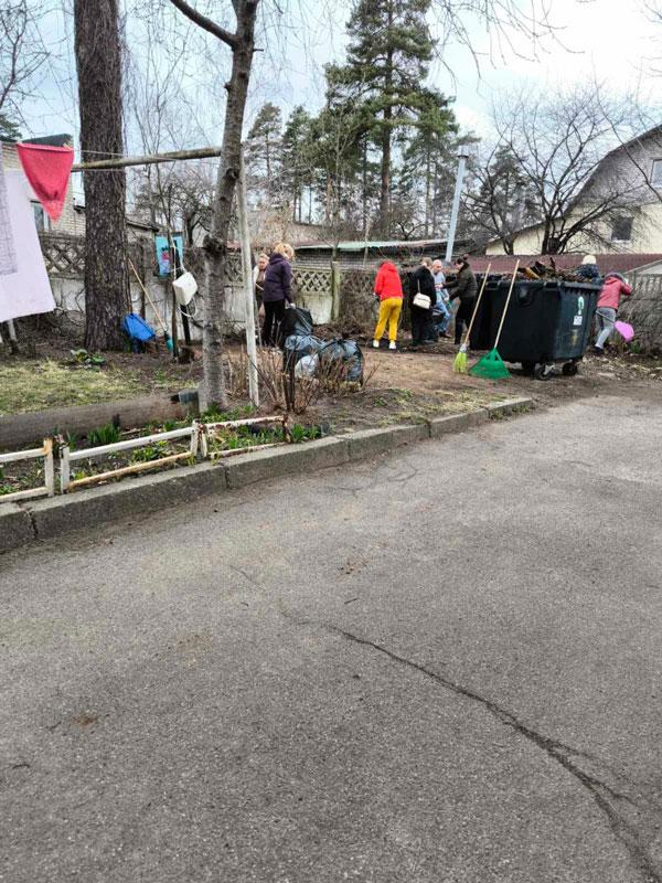 К уборке присоединились и жители дома.