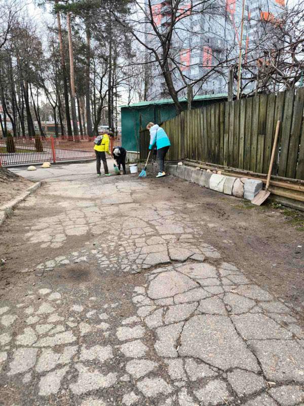 Управление по образованию администрации Партизанского района, средняя школа 183 и Центр по обеспечению деятельности в рамках месячника по наведению порядка провели субботник на придомовой территории улицы Геологической, 63а.