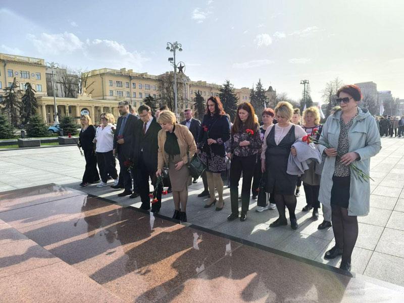 Завершилось мероприятие возложением цветов к Вечному огню на Площади Победы.