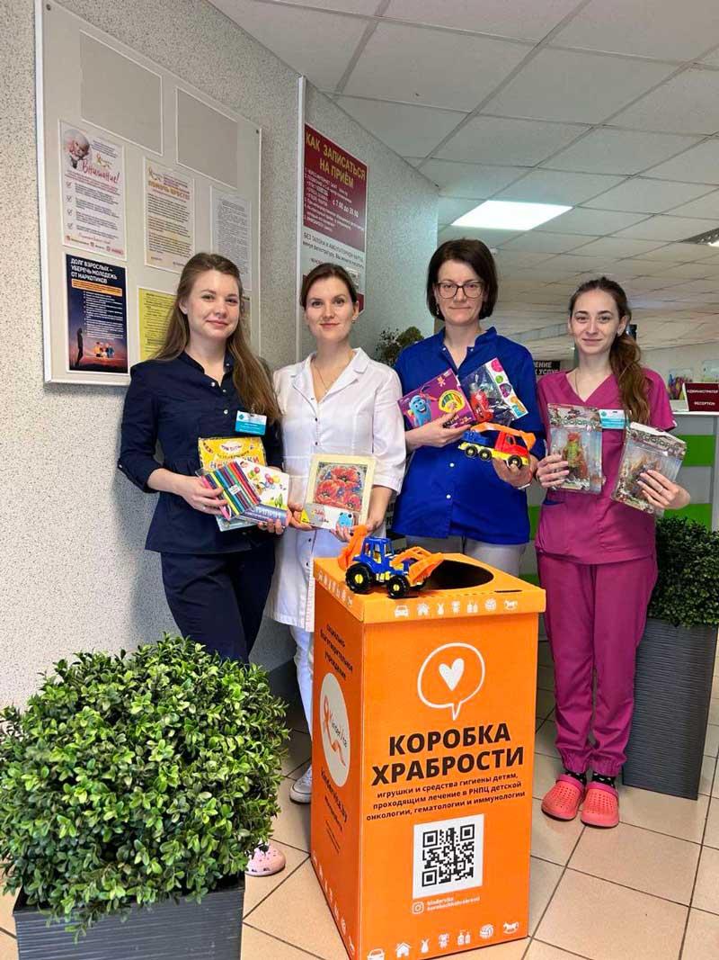 В УЗ 14 ЦРП установлена "Коробка храбрости" для сбора игрушек и средств личной гигиены детям проходящим лечение в "РНПЦ детской онкологии, гематологии и иммунологии". Сотрудники поликлиники принимают активное участие по сбору средств. Любой желающий может присоединиться и зарядить храбростью маленьких героев.