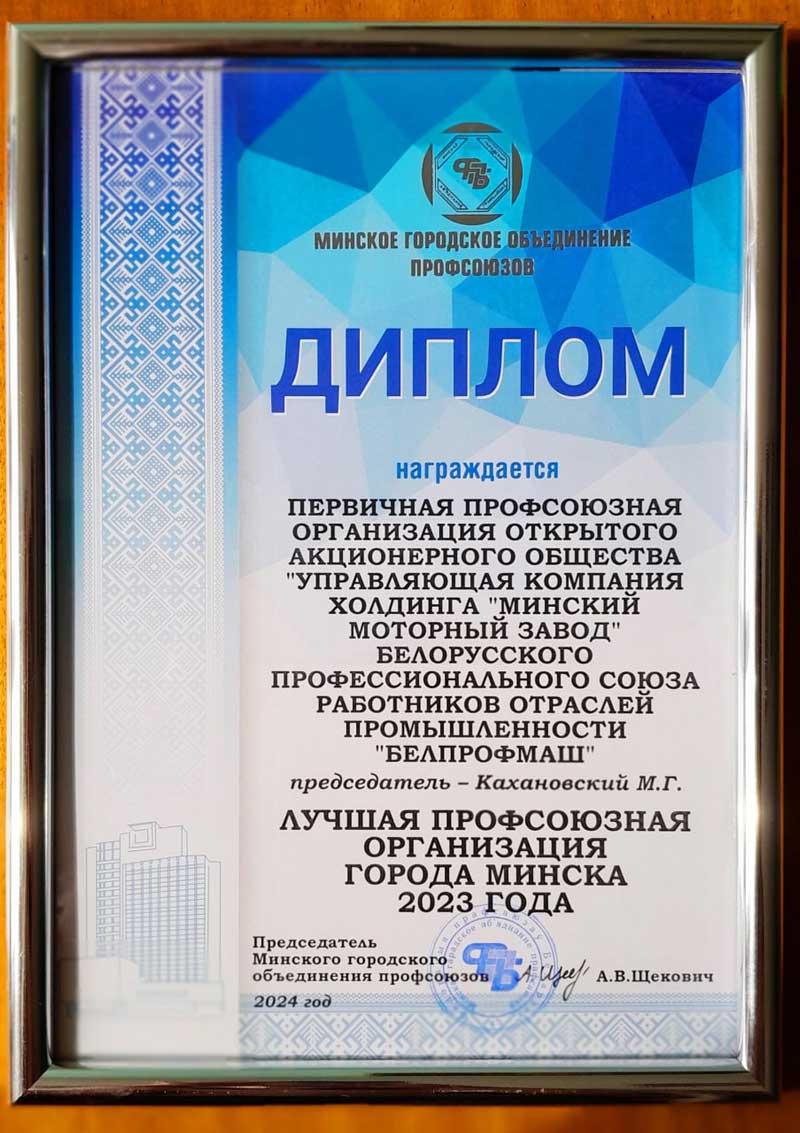 Плоды прошлогодней деятельности профсоюз ММЗ пожинает в текущем году: по итогам своей работы и по представлению столичных городских организаций отраслевых профсоюзов он признан лучшей профсоюзной организацией Минска 2023 года.