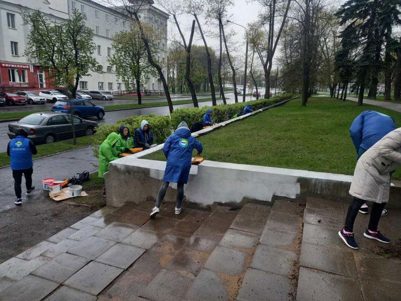 ✔️В сквере "Содружество" в границах улиц Долгобродской и О.Кошевого с участием сотрудников телекомпании "Мир" было произведено окрашивание подпорной стенки.