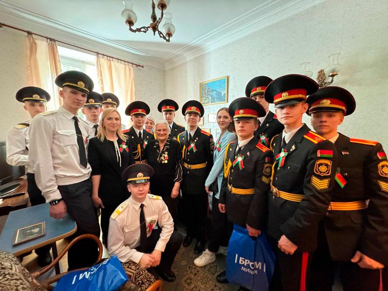 В преддверии Дня Победы лицеисты совместно с курсантами Академии МВД, представителями районной организации Белорусского Общества Красного Креста партизанского района и районной организации ОО «БРСМ», Партизанским районным отделом МЧС, ИМНС по Партизанскому г.Минска посетили ветеранов Великой Отечественной войны по месту жительства.