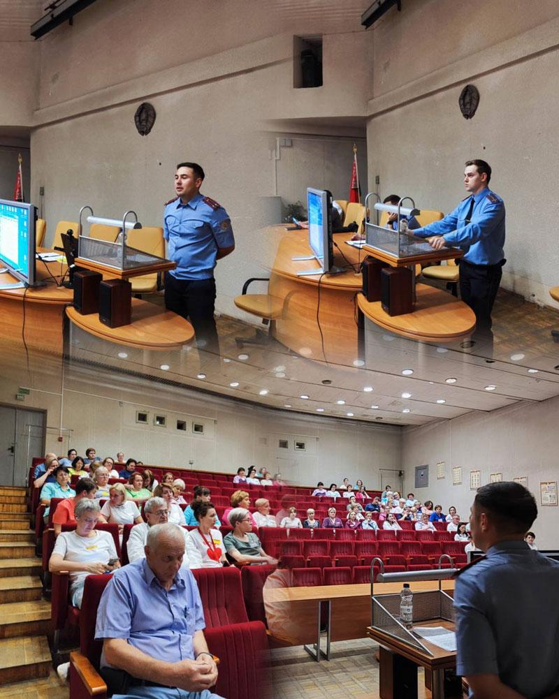 Начальник отделения по противодействию киберпреступности криминальной милиции подполковник милиции Дмитрий Андалюкевич и участковый инспектор ИДН лейтенант милиции Михаил Якимович довели до собравшихся самую актуальную информацию в сфере киберпреступлений, семейного насилия и преступлений среди детей и подростков, а также ответили на вопросы присутствующих.