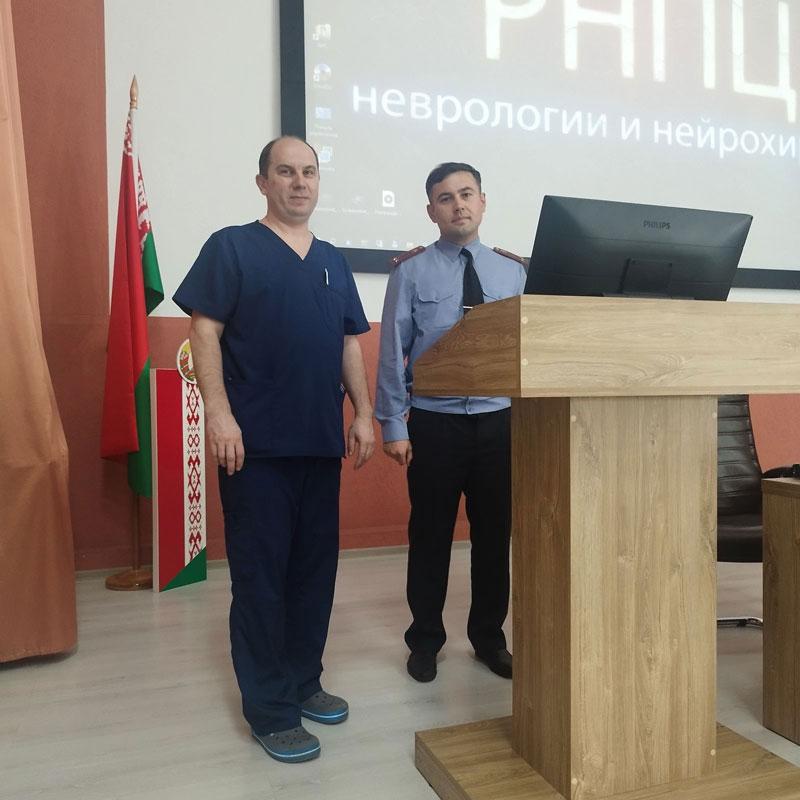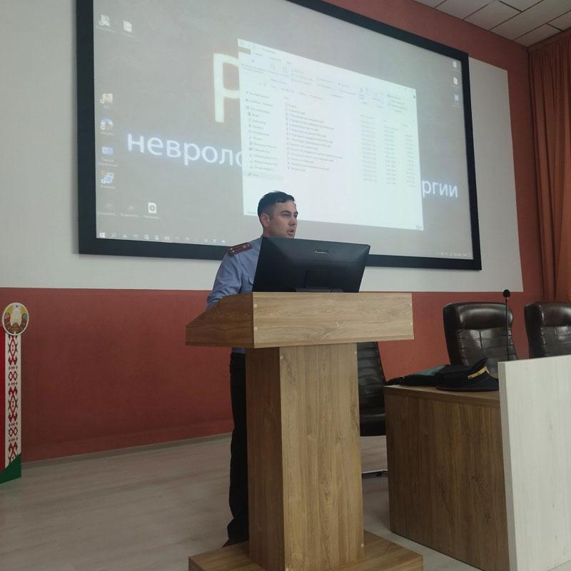 30.05.2024 в УЗ «РНПЦ неврологии и нейрохирургии» в рамках республиканской акции "Декада кибербезопасности" состоялась встреча коллектива центра с начальником отделения по противодействию киберпреступности криминальной милиции РУВД Партизанского района, подполковника милиции Андалюкевича Дмитрия Валерьевича.