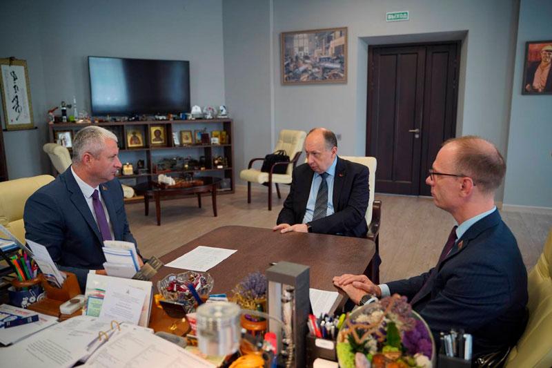 Начался визит с переговоров с генеральным директором ОАО «МТЗ» Виталий Вовк и примечательным фактом: Николай Поляков рассказал, что в свое время на Минском тракторном заводе проходил производственную практику.