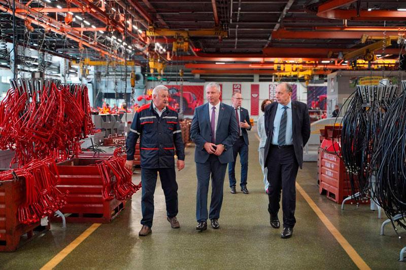 Дальше руководители отправились в корпус сборки тракторов, механический цех №5, прессовый цех, на строительство логистического центра и в парк «70 лет МТЗ».