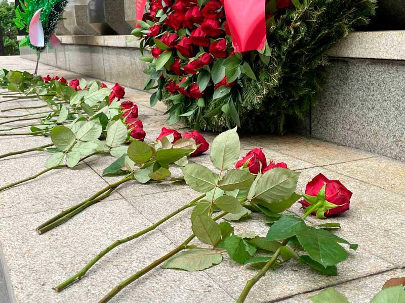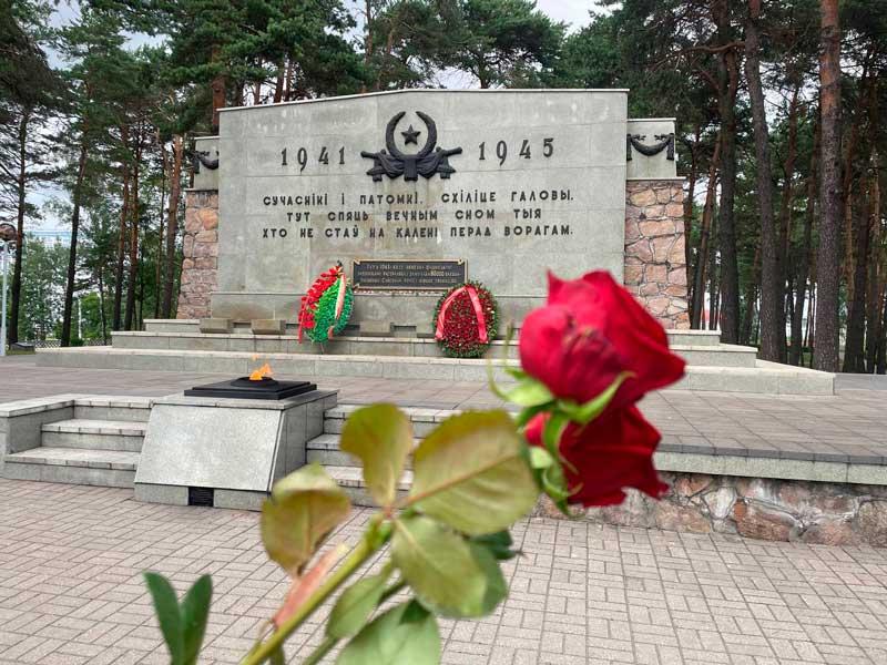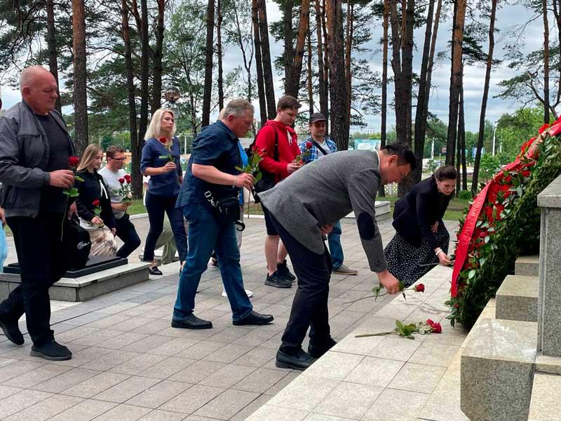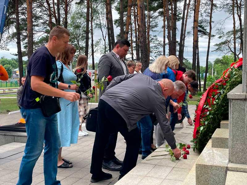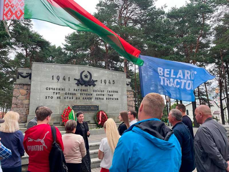 Представители структурных подразделений Минского тракторного завода возложили цветы к подножию мемориального комплекса «Масюковщина» на улице Тимирязева в Минске.