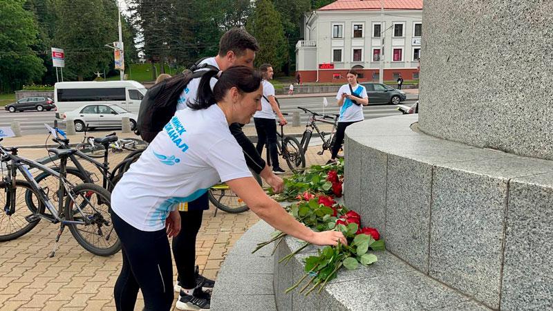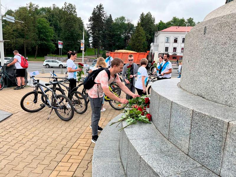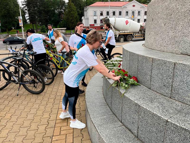 Финальной точкой велопробега стало возложение цветов у памятника «Беларусь Партизанская»