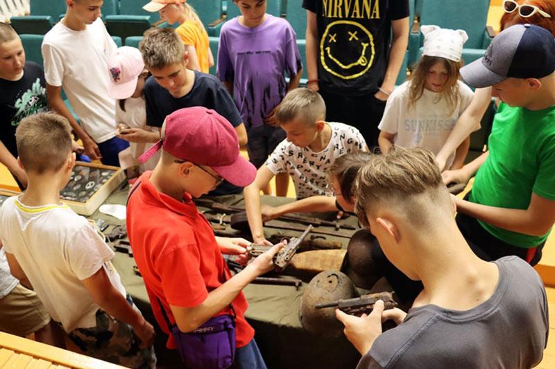 Ребята буквально засыпали гостя вопросами, касающимися поисковой практики, и остались под большим впечатлением от встречи, ведь Андрей Рубин привез в лагерь небольшую экспозицию находок, обнаруженных при раскопках. Все предметы можно было детально рассмотреть и даже потрогать.