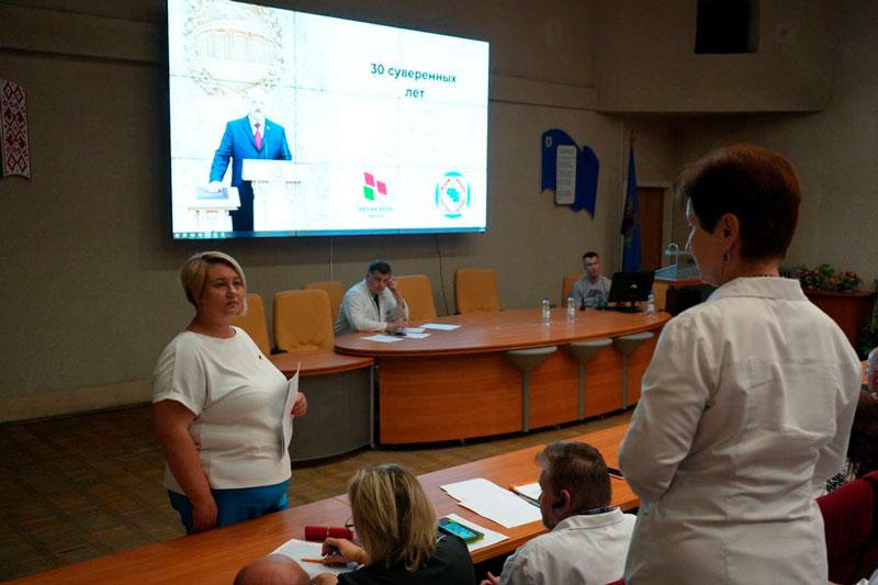 Валентина Довгалёва, председатель Партизанской районной «Белой Руси», депутат Мингорсовета, провела встречу с сотрудниками 6-й городской клинической больницы.
