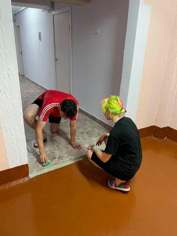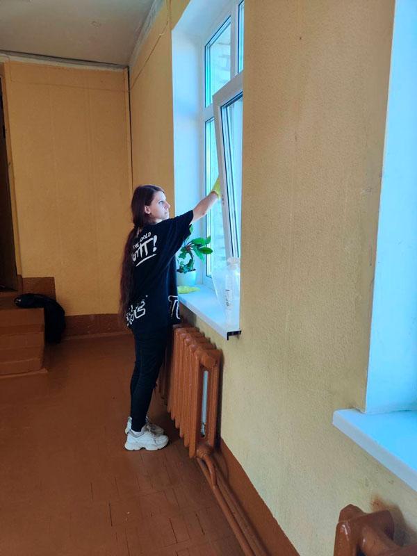 Ребята готовят учебные корпуса к новому учебному году, наводят порядок в аудиториях, кабинетах, фойе, холлах. Часть ребят трудятся в общежитии, оказывают помощь в наведении порядка на кухнях, корридорах, местах общего пользования.