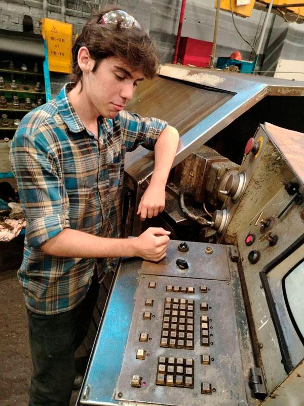 Ребята работают на металлорежущих станках, выполняют механические операции, занимаются изготовлением деталей.