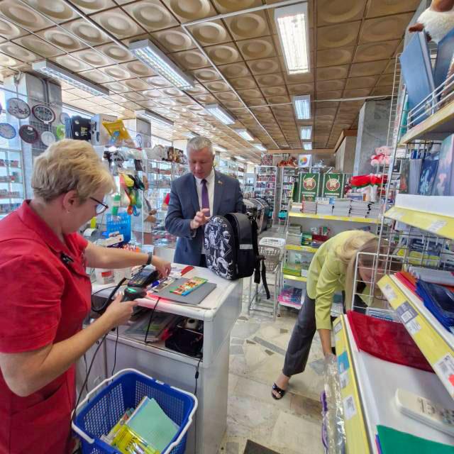 Вместе с начальником отдела торговли Ольгой Сосновской он посетил магазин «Старт-Х». Глава администрации не только приобрел все необходимое для школьника, но и проинспектировал ассортимент и цены предлагаемых товаров.