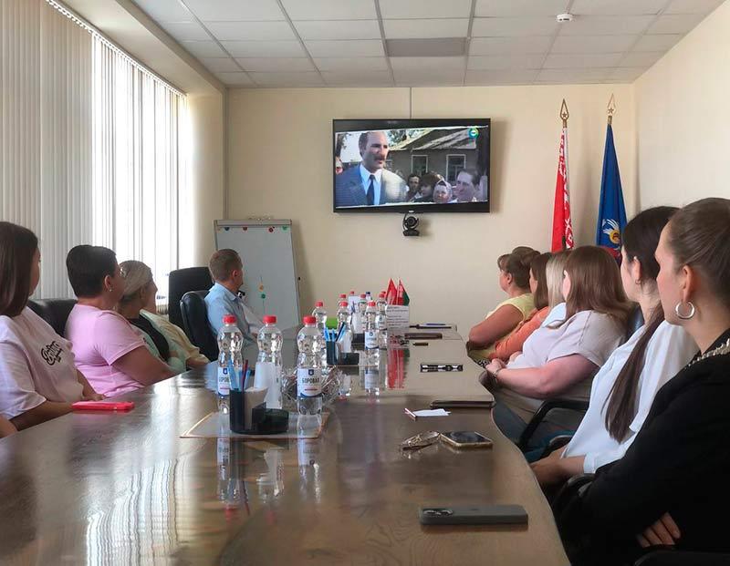 Присутствовавшим продемонстрировали фильм, посвященный становлению нашей республики в непростые годы после развала Советского Союза и неоценимому вкладу Президента Александра Григорьевича Лукашенко в создание сильной, процветающей и мирной Беларуси.