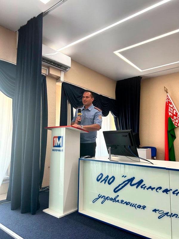 Трудовой коллектив с профилактической целью посетили: первый заместитель начальника ГУВД Мингорисполкома - начальник МОБ Андрей Бакач;