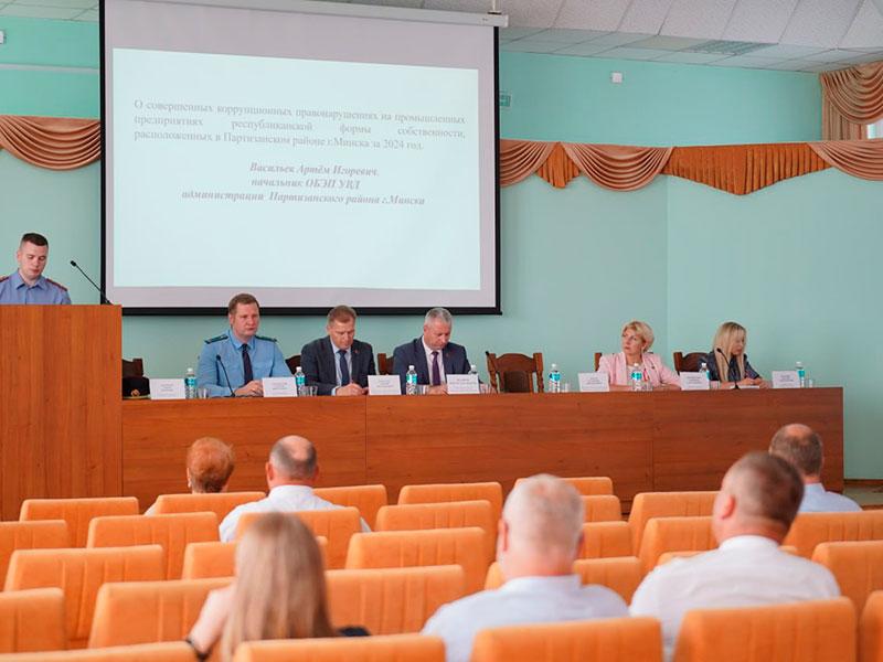 Мероприятие прошло с участием главы администрации Николая Полякова и руководства МТЗ. Речь шла о совершенных преступлениях на промышленных предприятиях государственной формы собственности и принятых мерах по противодействию.