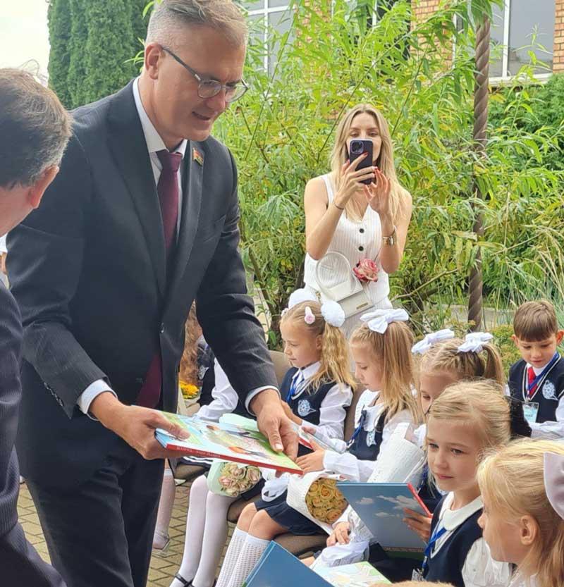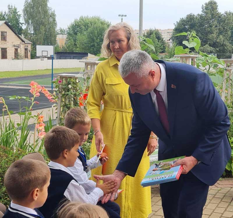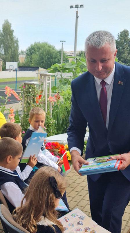 Подарки учащимся Гимназии № 5 вручили Вадим Францевич Гигин, депутат Палаты представителей Национального собрания Республики Беларусь, и Николай Александрович Поляков, глава администрации Партизанского района г.Минска.
