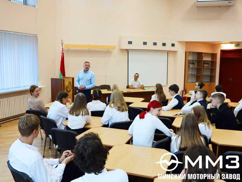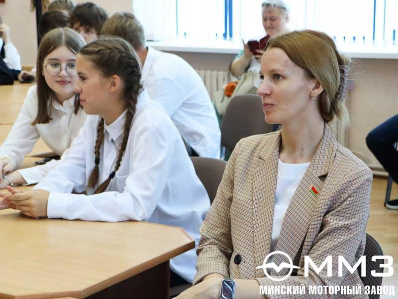 В Год качества и 80-летия освобождения Беларуси от немецко-фашистских захватчиков специалисты завода говорили с молодым поколением о достижениях белорусского народа, ценностях, которые важно сохранить во имя будущего. Первый урок в этом году был посвящен теме «Нам есть чем гордиться, нам есть что беречь!»