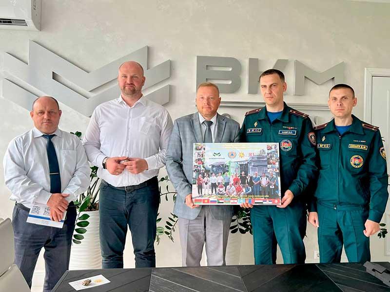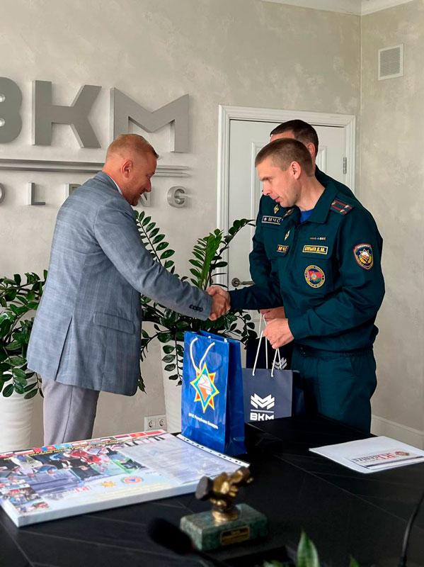 В завершение встречи МЧС подарили предприятию фотокартину и памятные нагрудные знаки, а от генерального директора получили книги о BKM Holding.