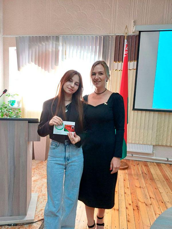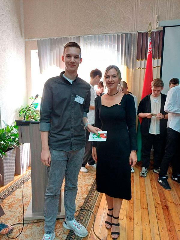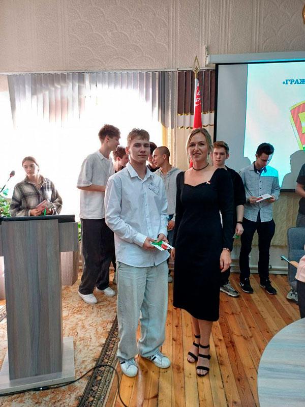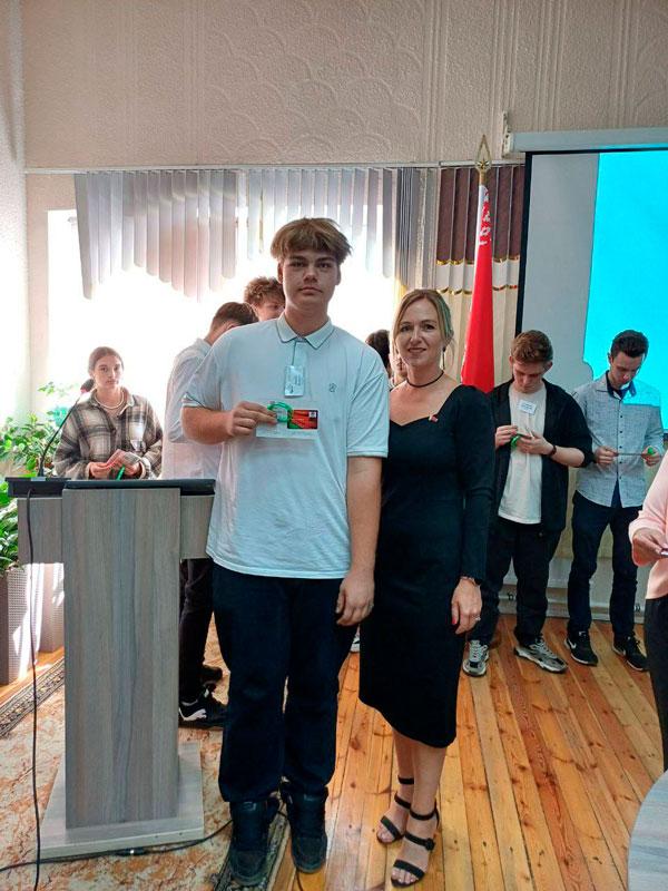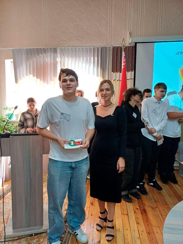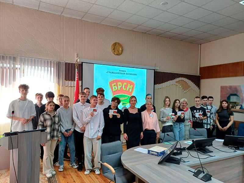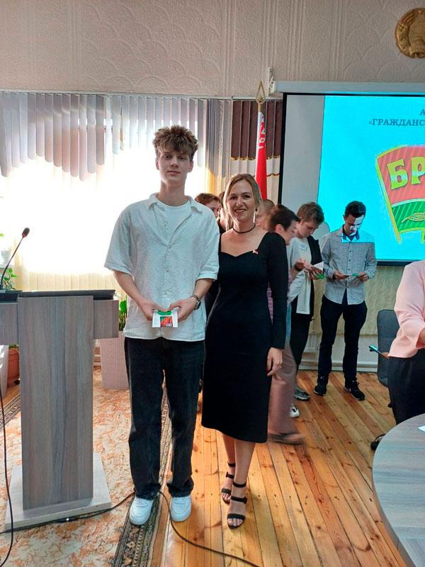 Первый секретарь Партизанской районной ОО «БРСМ» Решетнева Юлия Анатольевна торжественно вручила членские билеты БРСМ учащимся, впервые вступившим в организацию, и пожелала ребятам молодежной энергии, творчества и новаторства, поиска и инициативы в работе.