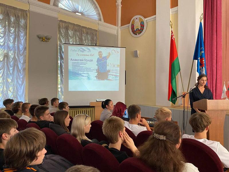 В филиале БНТУ «Минский государственный архитектурно-строительный колледж» прошел урок мужества с участием мотивационного спикера, мастера спорта по плаванию, многократного рекордсмена мира и Европы, члена национальной паралимпийской сборной Республики Беларусь, предпринимателя, учредителя благотворительного фонда и общественного деятеля Алексея Талая.