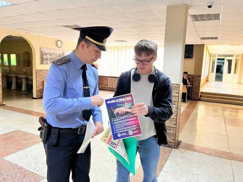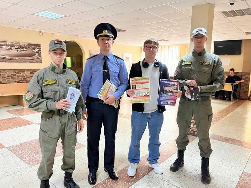 Воспитанники военно-патриотического клуба "Аскер" совместно с инспектором ИДН Партизанского района г.Минска Валентином Николаевичем Гуменниковым провели работу среди учащихся колледжа, направленную на повышение осведомленности о проблеме киберпреступности и способах защиты от мошеннических действий.
