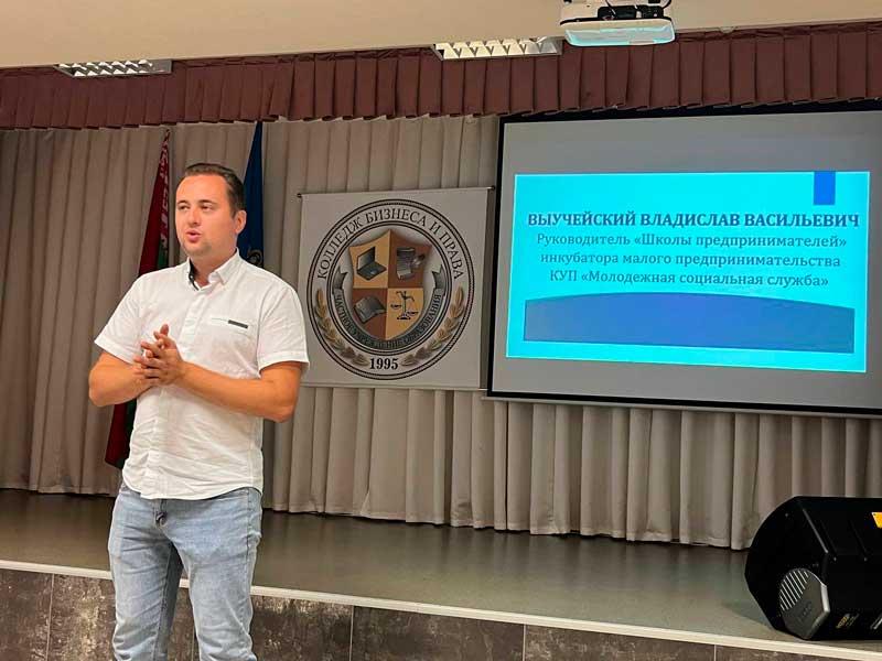 Организатором встречи с учащимися ЧУО «Колледж бизнеса и права» по вопросам развития молодежного предпринимательства, которая состоялась 26.09.2024, выступила администрация Фрунзенского района г.Минска.