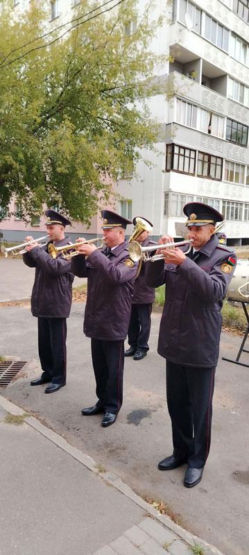 В Партизанском районе «Ко дню пожилого человека» коллектив духового оркестра ГУВД Мингорисполкома навестил ветерана Великой Отечественной войны Юшкевича Геннадия Владимировича, для которого прозвучали попурри из знакомых мелодий. Геннадий Владимирович не смог сдержать слез и теплую улыбку, а в благодарность за память сам спустился во двор, чтобы лично высказать коллективу слова признательности и пожелать только мирного неба над головами.