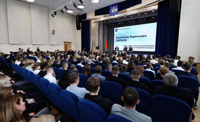 Студенты Академии связи приняли участие сегодня во встрече студентов технических вузов г. Минска с заместителем главы Администрации Президента Владимиром Борисовичем Перцовым, Министром информации Республики Беларусь Маратом Сергеевичем Марковым и аналитиком БИСИ Алексеем Авдониным.