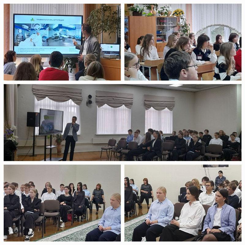 Заместитель главного врача Алексей Савчук познакомил участников мероприятия со спецификой деятельности клиники. Ребята и педагоги посмотрели видеофильм об истории создания больницы и достижениях последних лет.