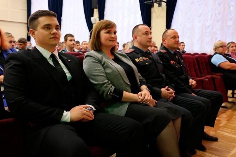 На мероприятии присутствовали почетные гости: председатель Союза женщин МВД полковник милиции Алеся Люциановна Суринт и старший инспектор Центра культурно-воспитательной работы капитан милиции Владислав Андреевич Захарьев.