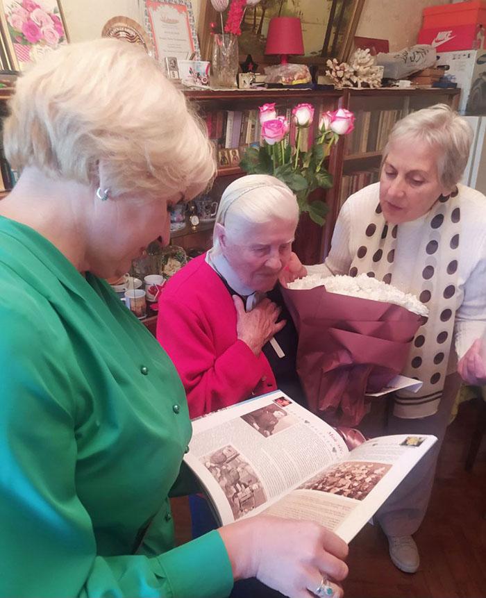 В этот праздничный день ее пришли поздравить заместитель главы администрации Партизанского района г.Минска Филиппович Л.А., представители ТЦСОН и районного совета ветеранов войны и труда. Они вручили цветы и памятные подарки.