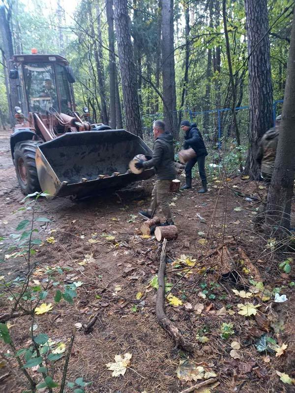 Работники УП "Зеленстрой Партизанского района г. Минска" совместно с общественностью продолжили вести работы по уборке и раскряжовке валежной древесины в лесном массиве Дачного проезда и ул. Ф. Скорины.