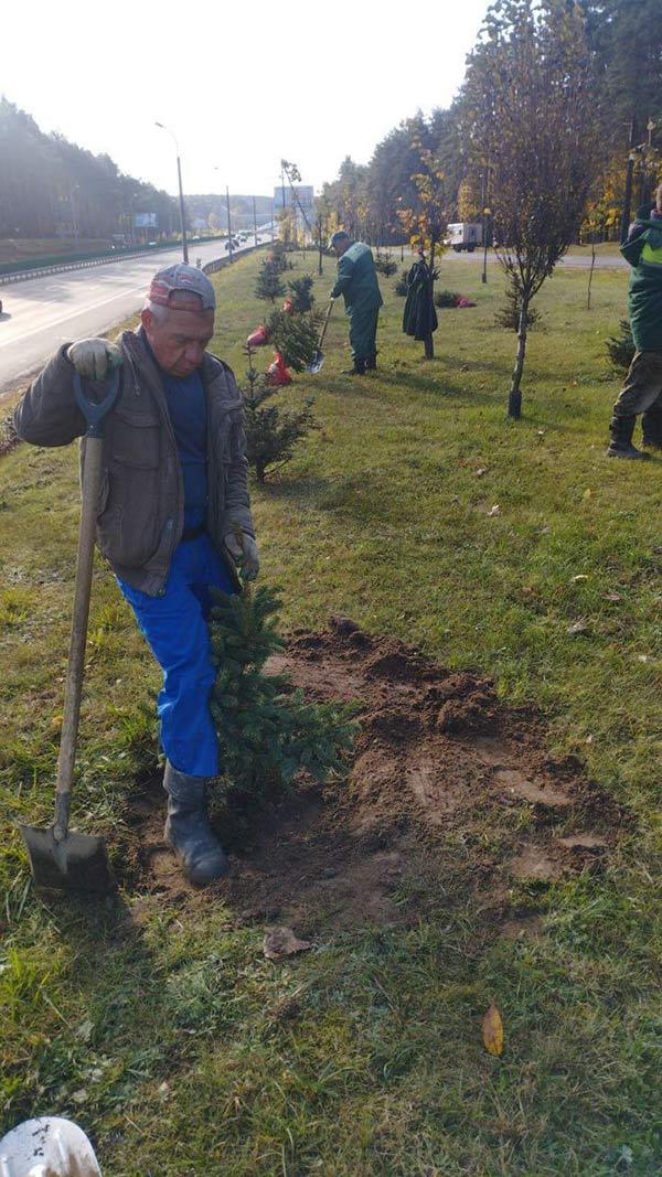 На озелененной территории вдоль МКАД велись работы по посадке деревьев.