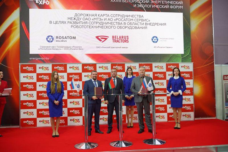 Минский тракторный завод, страновой офис Госкорпорации "Росатом" в Республике Беларусь - ООО "Русатом Бел" и АО "Росатом Сервис" подписали дорожную карту сотрудничества в области внедрения роботехнического оборудования. Подпись под документом со стороны МТЗ поставил технический директор Илья Фирсов.