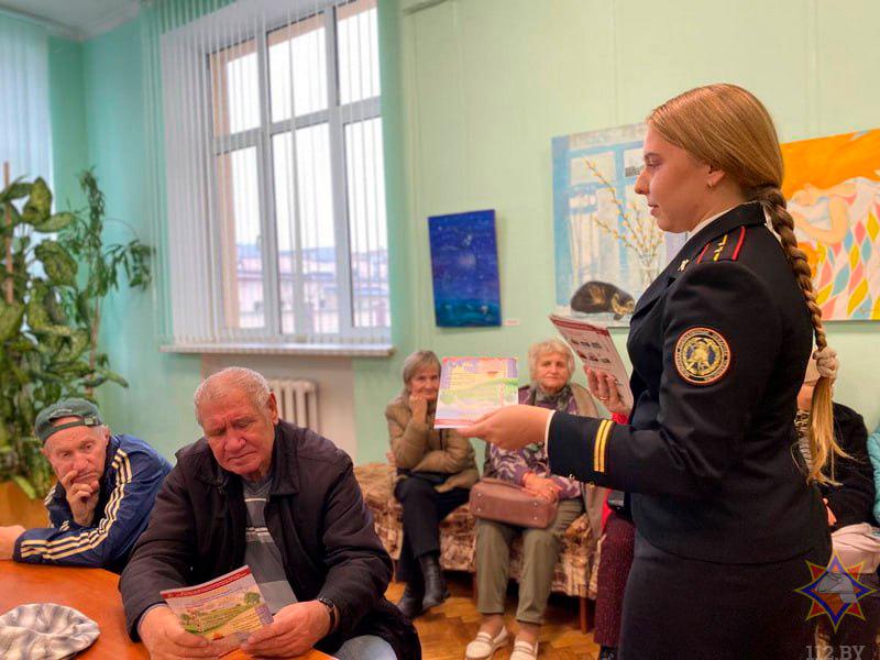 В рамках республиканской акции «С заботой о безопасности малой Родины» работники Партизанского районного отдела по чрезвычайным ситуациям совместно с представителем Белорусского добровольного пожарного общества организовали и провели профилактическое мероприятие для пожилых граждан из Белорусского общества глухих. Встреча состоялась на базе Республиканского Дворца культуры имени Н.Ф. Шарко.