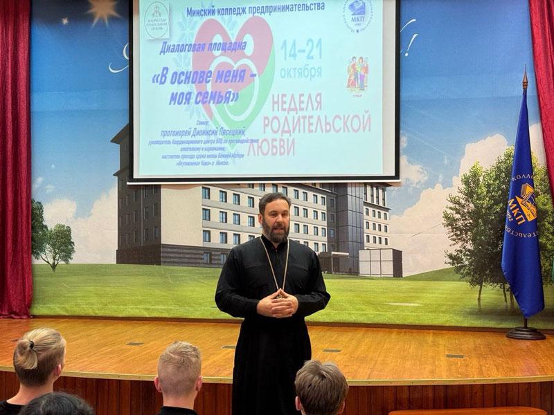 В рамках недели родительской любви в учреждениях образования Партизанского района - филиале «Колледж современных технологий в машиностроении и автосервисе» УО РИПО, Минском энергетическом колледже и Минском колледже предпринимательства - состоялись встречи учащихся с настоятелем прихода храма в честь иконы Божией Матери «Неупиваемая Чаша» протоиереем Дионисием Пясецким.
