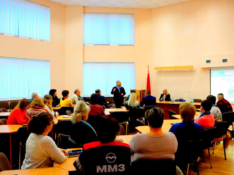 Специалисты предприятия на встрече с председателем Партизанского районного отделения Белорусской Партии "Белая Русь" Жанной Гвозд и депутатом Мингорсовета Валентиной Довгалёвой обсудили тему «На пути к единству вместе».