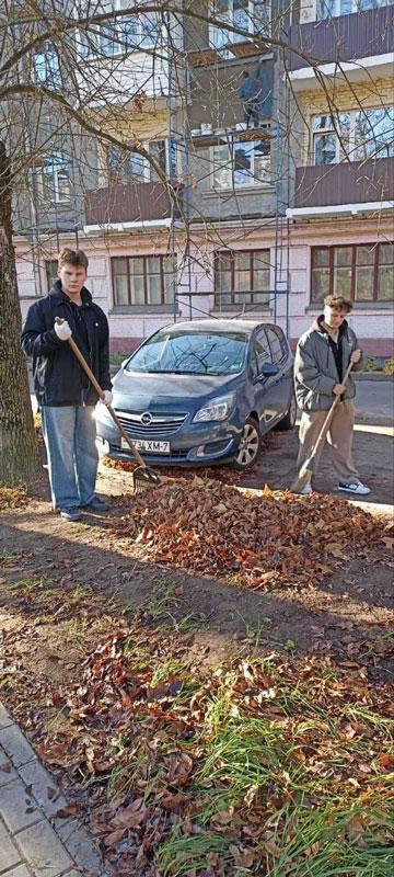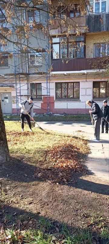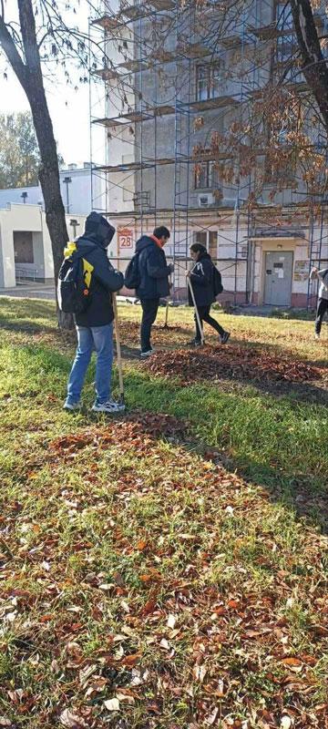 Солнечные осенние дни стали отличным поводом для того, чтобы выйти на свежий воздух и заняться полезным делом. Студенты с энтузиазмом взялись за уборку листвы во дворах жилых домов.